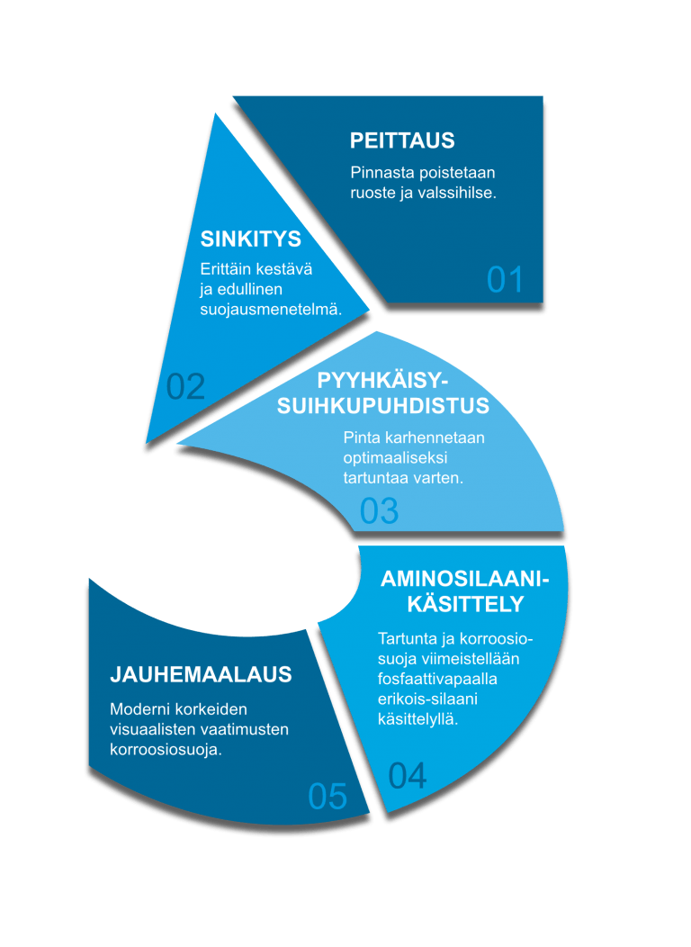 jo vuosia ja pinnoiteyhdistelmä on testattu yli 6 kk kestävissä kiihdytetyissä korroosiokokeissa, joilla on todettu pinnoiteyhdistelmän soveltuvan jopa standardin ISO 12944 mukaiseen rasitusluokkaan C5/H. Samoissa testeissä todennettiin pinnoitteen kestävän yhtä hyvin tai jopa paremmin kuin kilpailijoiden tuotteet.